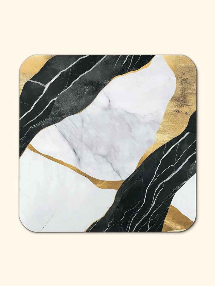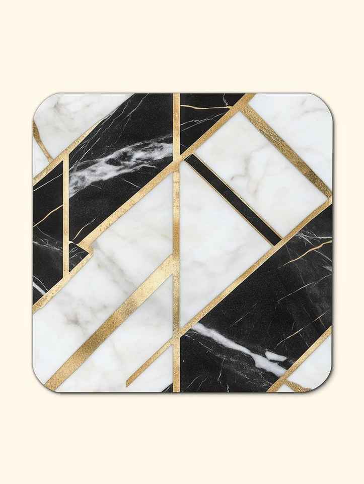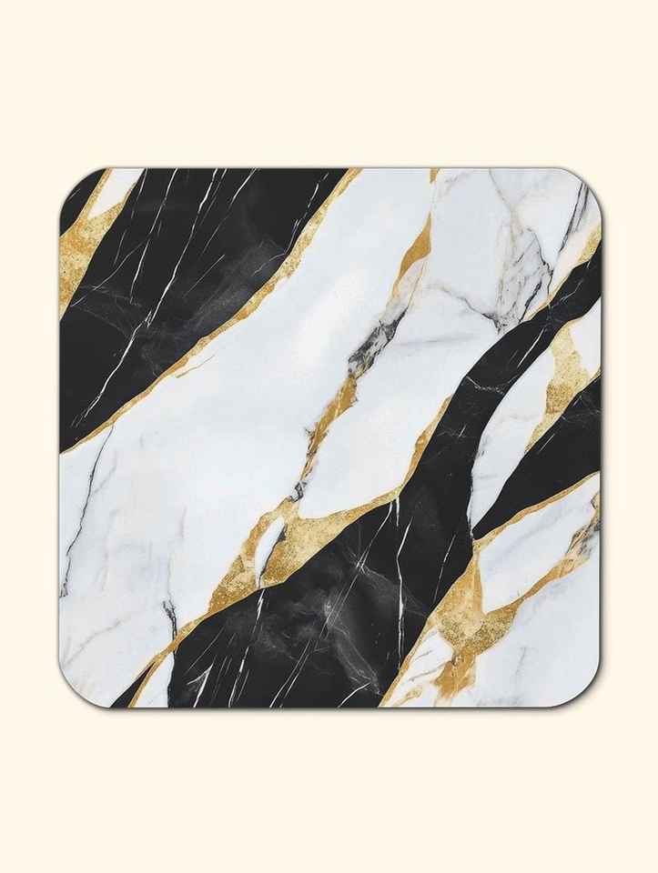 ชุดจานรองแก้วหินอ่อนสีขาวดำสุดหรู 4 ชิ้น พร้อมลายทอง ดีไซน์หรูหรา