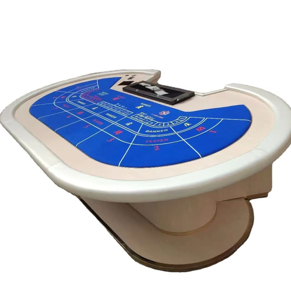 โต๊ะโป๊กเกอร์บาคาร่าสีขาวสุดหรูโต๊ะคาสิโนสำหรับขายโต๊ะโป๊กเกอร์พร้อมถาดทำจากโรงงาน
