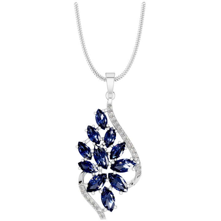 สร้อยคอรูปใบไม้สีขาวและสีฟ้ารูปไพลินสุดหรูจี้ห้อยคอสำหรับงานแต่งงานที่ไร้กาลเวลาและมีสเน่ห์สำหรับโอกาสซื้อจำนวนมาก