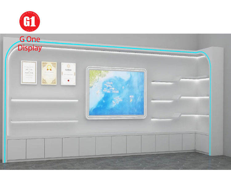 ตู้โชว์น้ำหอมสีขาวทองสุดหรู สำหรับร้านน้ำหอมอาหรับระดับไฮเอนด์ เหมาะสำหรับตกแต่งร้านค้าในห้างสรรพสินค้า