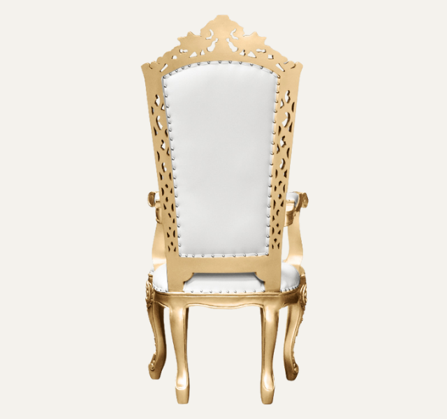 เก้าอี้บัลลังก์สีขาวสุดหรู ทำมือ ทนทาน สไตล์ดั้งเดิม เหมาะสำหรับโรงแรม ห้องนั่งเล่น และงานแต่งงาน