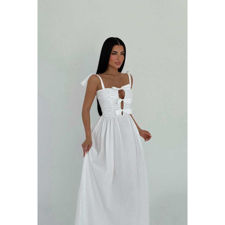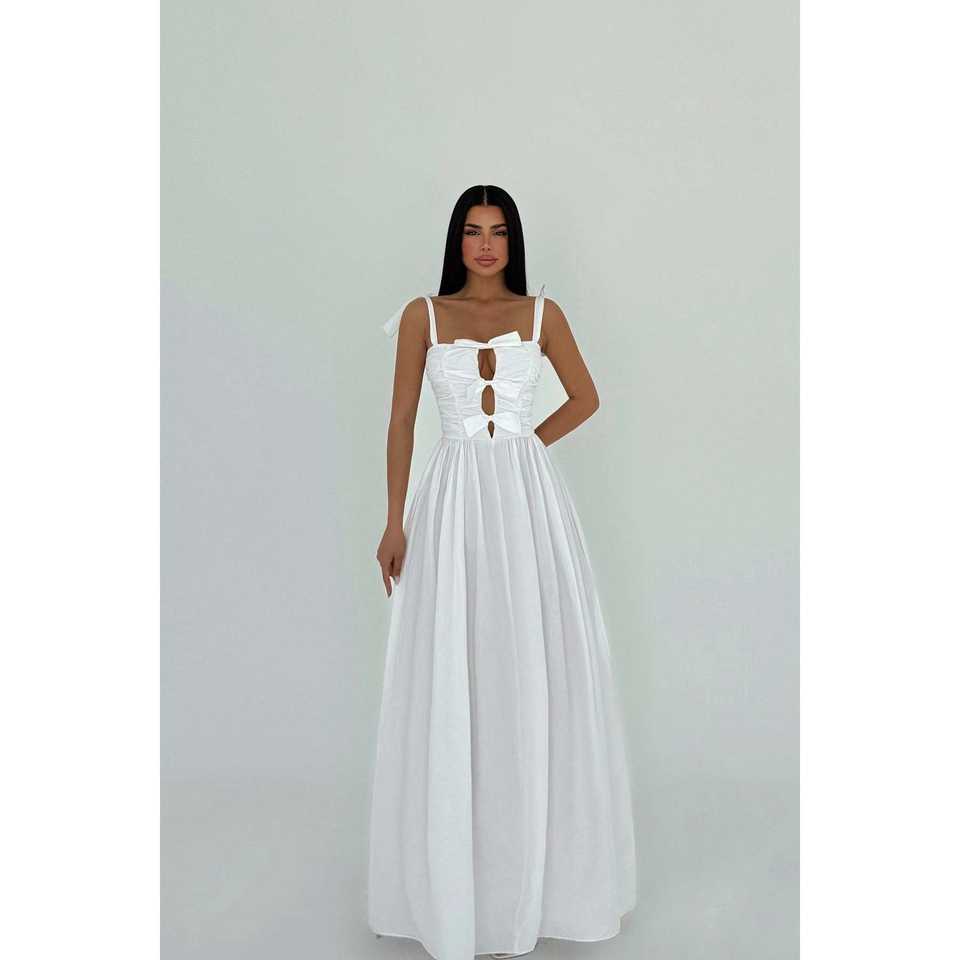 ชุดราตรีทรงบอลกาวน์สีขาวหรูหรา รุ่น Mirabelle ไซส์ XS-XL ผ้าโพลีเอสเตอร์และออร์แกนซา ทรงเอ็มไพร์ แขนสั้น ผ้าทอ