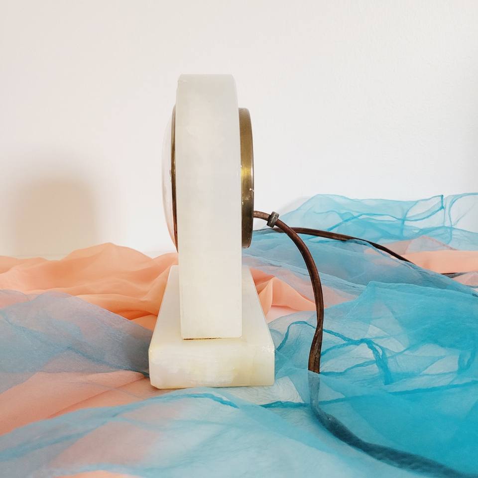 นาฬิกาแขวนผนังไฟฟ้าทองเหลือง หินโอนิกซ์สีขาว