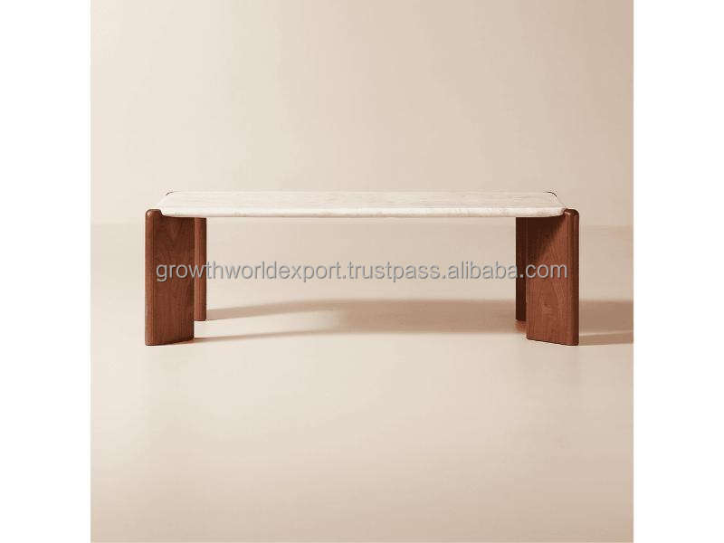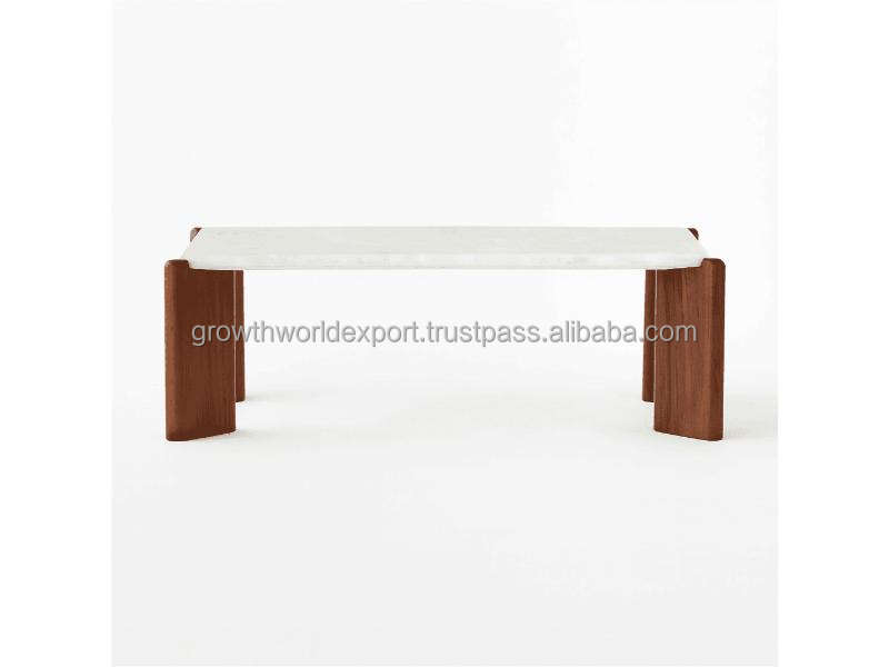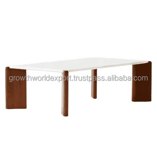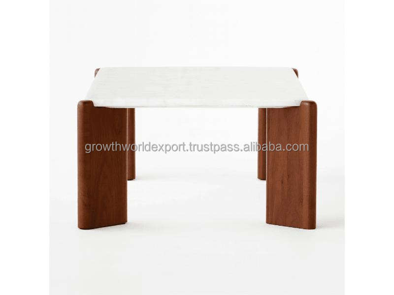 โต๊ะกาแฟควอตซ์สีขาวสุดหรูพร้อมฐานไม้เนื้อแข็ง โต๊ะกลางสไตล์โมเดิร์นมินิมอลสำหรับห้องนั่งเล่น ท็อปควอตซ์คุณภาพพรีเมียม