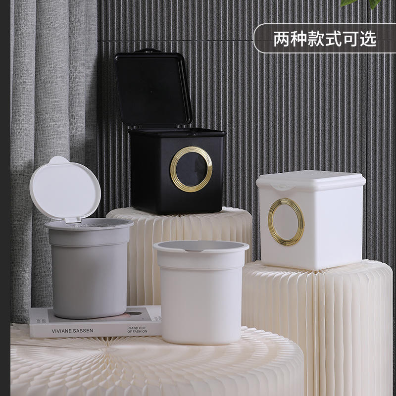 ถังขยะตั้งโต๊ะทรงสี่เหลี่ยมสีขาวหรูหรา พร้อมฝาปิดแบบพลิก สำหรับใช้ในบ้าน สำนักงาน หอพัก