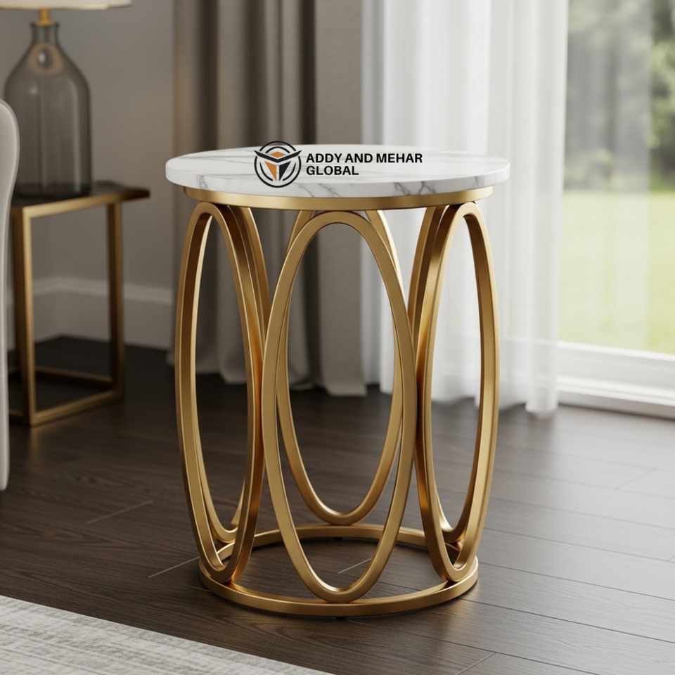 โต๊ะข้างทรงหรูหราสีขาว ท็อปสีขาว ขาเหล็กสแตนเลสสีทอง รูปทรงวงรี ดีไซน์ทันสมัย สไตล์อินดัสเทรียล เหมาะสำหรับอพาร์ทเมนต์ โรงเรียน เป็นมิตรกับสิ่งแวดล้อม