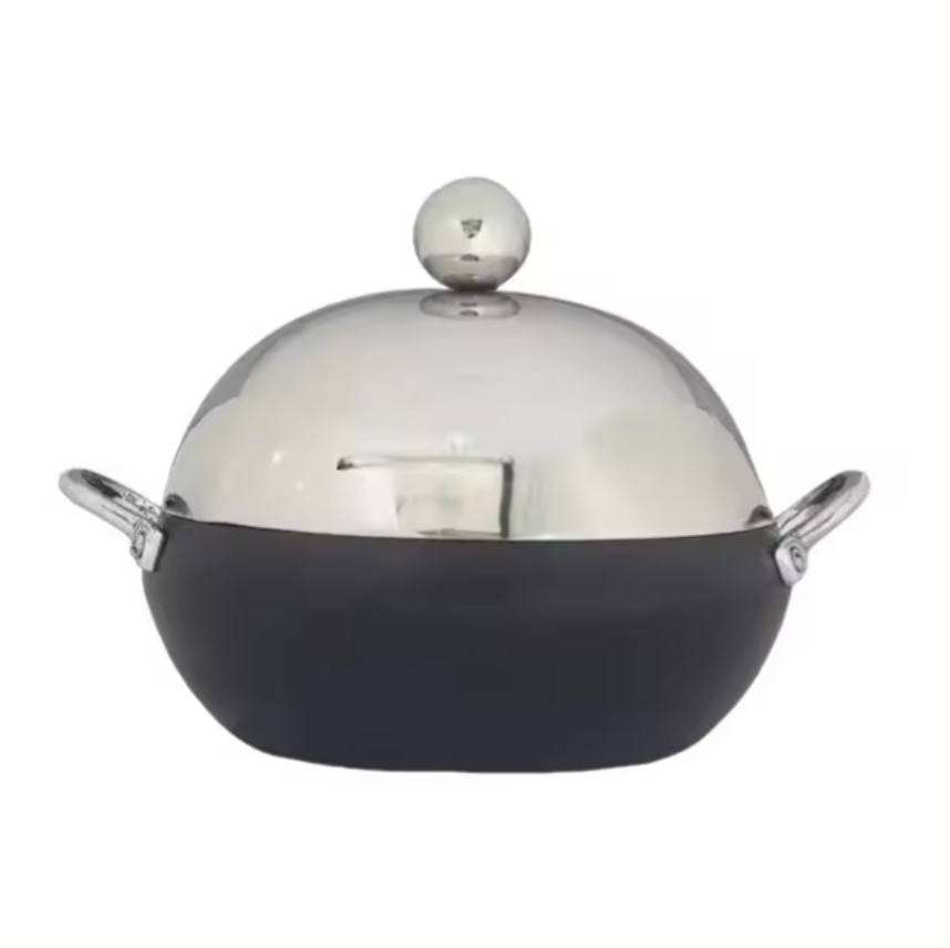 หม้อไฟสีขาวและสีทองสุดหรูพร้อมฝาปิดทรงกลมเหมาะสำหรับการชุมนุมรอบเดือนรอมฎอนรวมวัสดุที่มีคุณภาพสูง