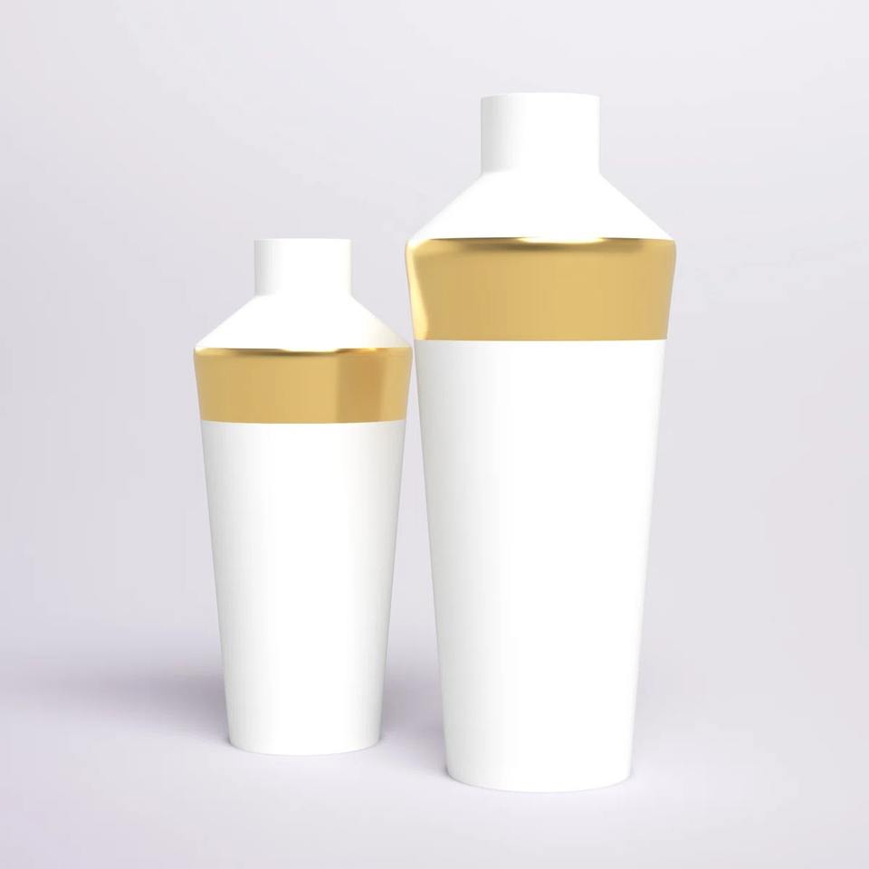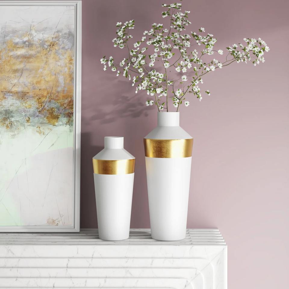 แจกันคู่สีขาวและสีทองสุดหรูสำหรับตกแต่งคอนโซลหรือตกแต่งด้วยหิ้งแจกันคู่ที่ได้แรงบันดาลใจจากการตกแต่งแบบทูโทน