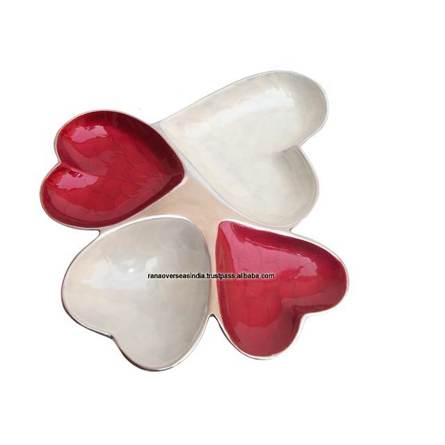 ถาดเสิร์ฟขนมและขนมขบเคี้ยวรูปหัวใจมีสี่ช่องสำหรับงานเลี้ยงงานแต่งงานที่บ้าน