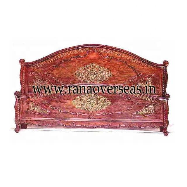 เตียงคู่ทำจากไม้สำหรับตกแต่งห้องนอนห้องนั่งเล่นฝังทองเหลืองแกะสลักด้วยมือ