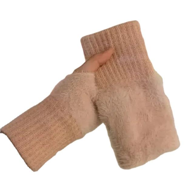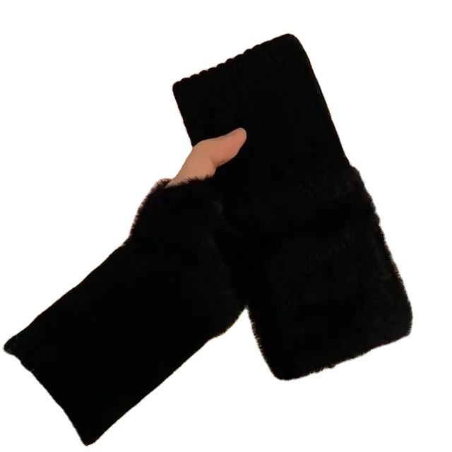ถุงมือครึ่งนิ้วสุดหรูผ้ากำมะหยี่ขนมิงค์ใหม่สำหรับผู้หญิงผู้ชายสำหรับงานปาร์ตี้กีฬากลางแจ้งขับรถฤดูหนาว