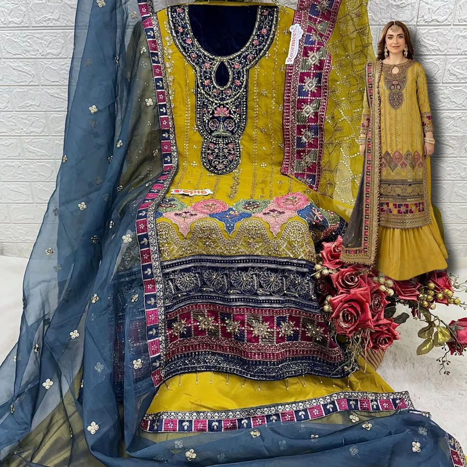 ชุดผ้าโปร่งประดับมุกสำหรับฤดูหนาวสุดหรูมีซับในด้านล่างและเสื้อผ้าปากีสถาน