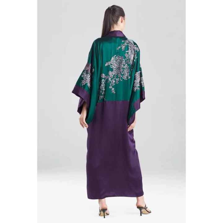 ชุดคลุมกิโมโนผ้าซาตินหรูหราสำหรับผู้หญิง ชุดเดรสยาวคลุมเท้า ลายดอกไม้ พิมพ์ลายธรรมชาติ แขนยาว เปิดด้านหน้า มีสายผูกเอว ชุดนอน
