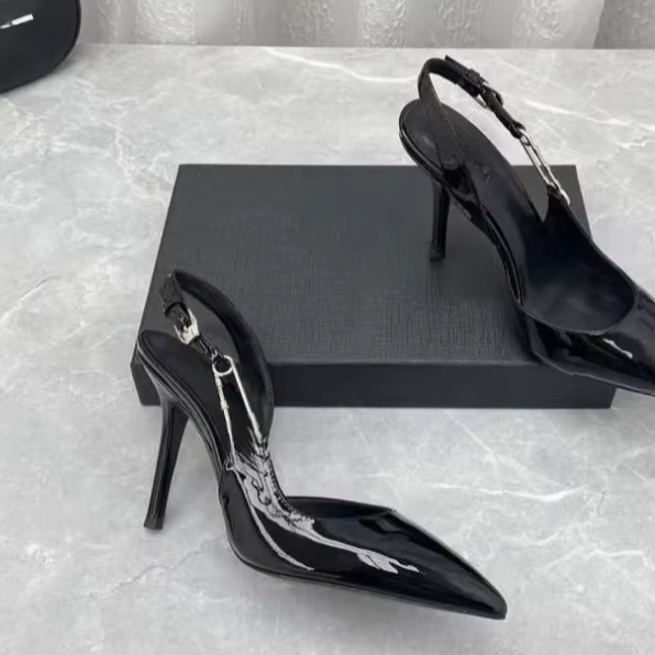 รองเท้าส้นสูงสตรีแบรนด์เนมหรูหรา ดีไซน์เก๋ หนังแท้ ปลายแหลม ประดับหัวเข็มขัด เพิ่มความสูง เซ็กซี่