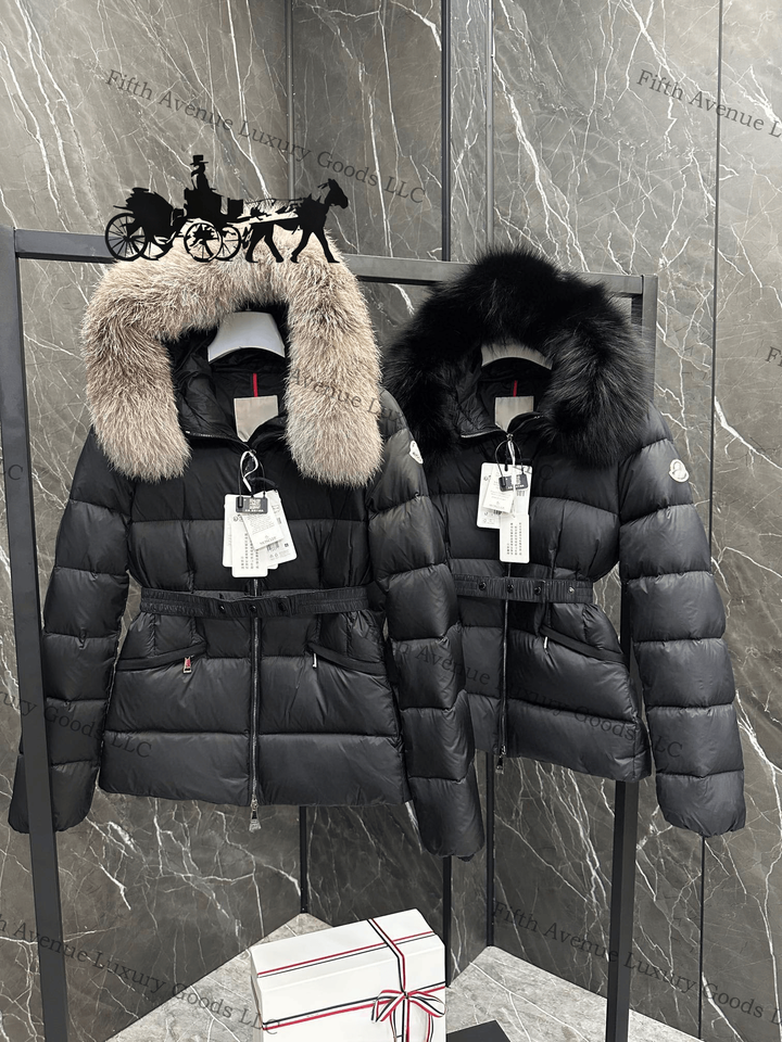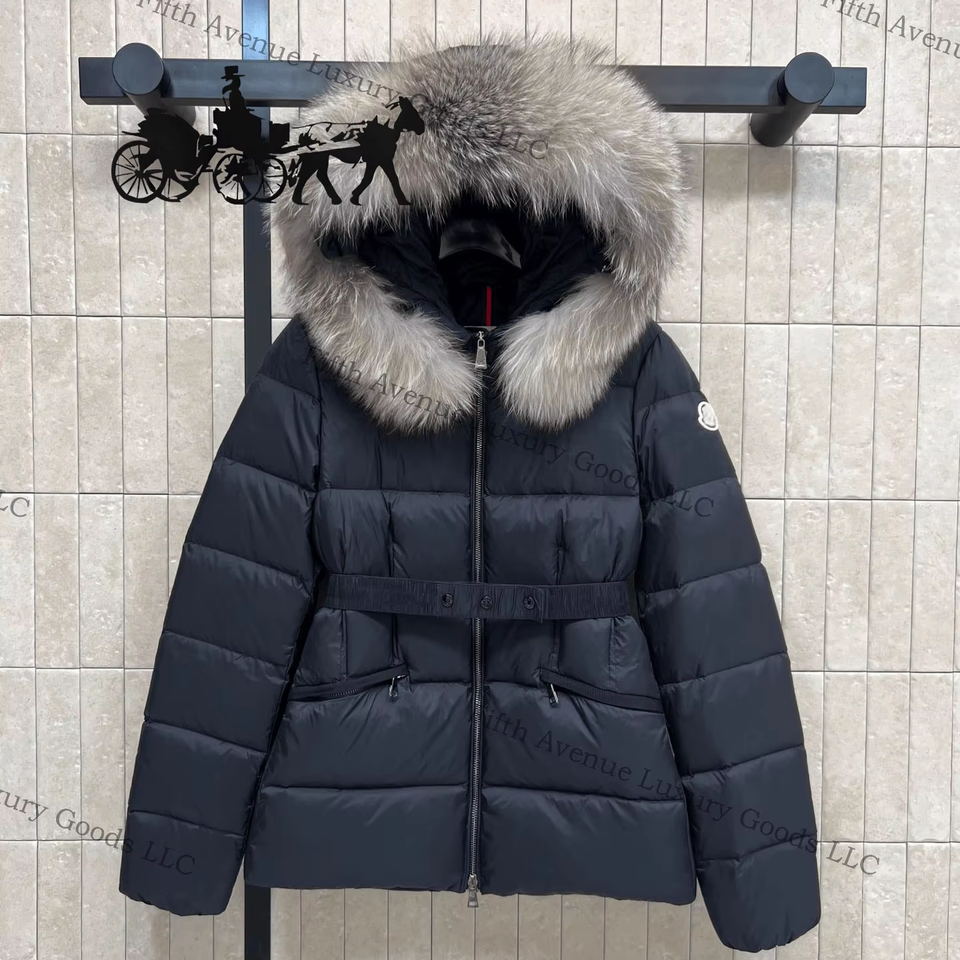 เสื้อแจ็คเก็ตดาวน์ผู้หญิงสุดหรู ป้องกันลม ดีไซน์สง่างาม พร้อมฮู้ดขนฟ็อกซ์แคนาดา บรรจุขนเป็ดขาวน้ำหนักมากกว่า 300 กรัม