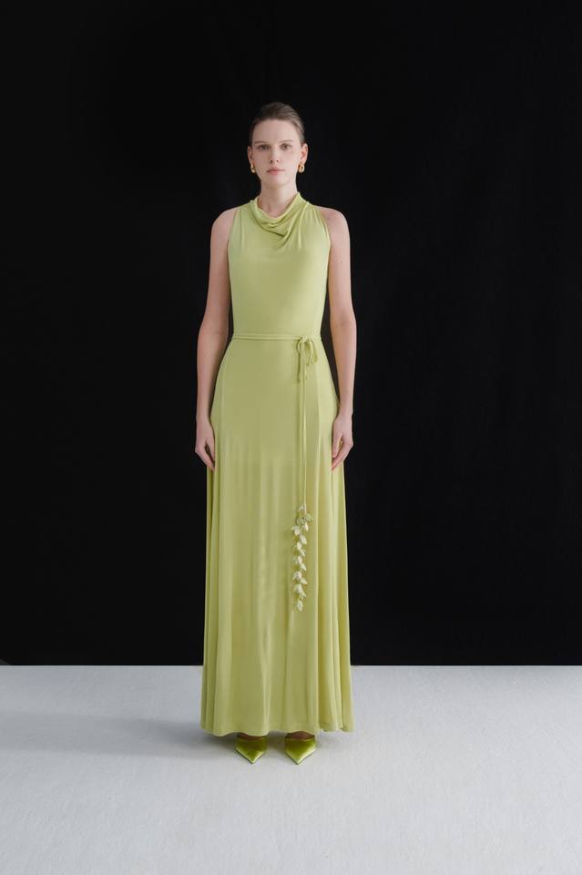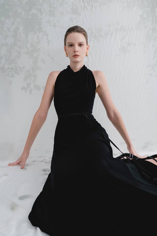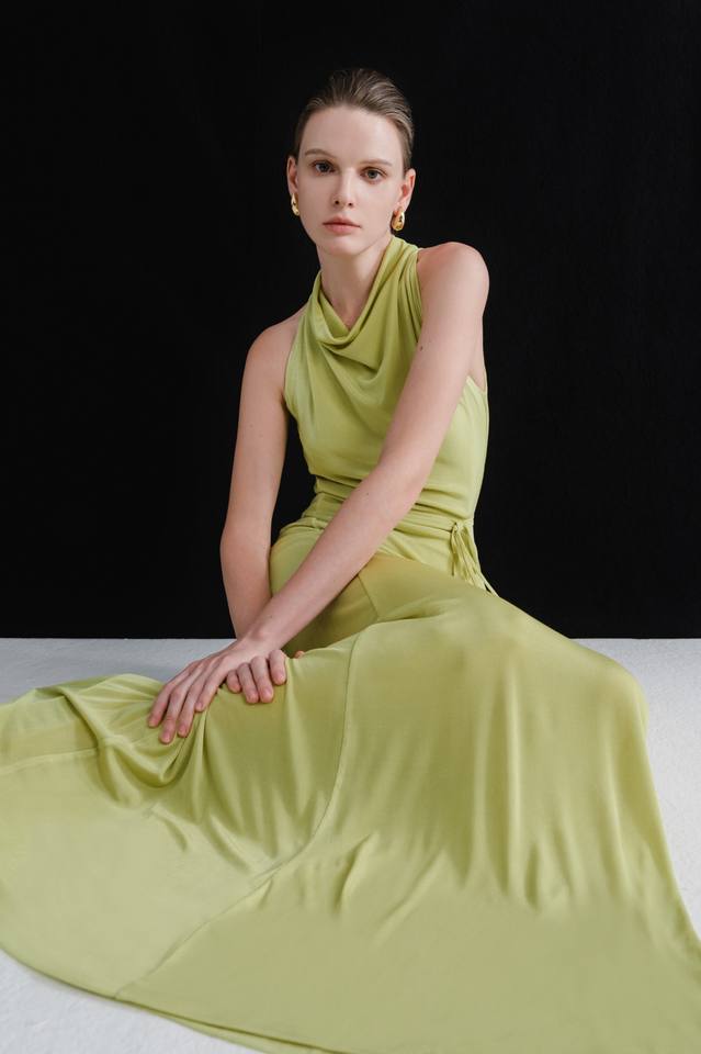 ชุดเดรสสีทึบของผู้หญิงอลิด้าคินท์หรูหราสำหรับฤดูร้อนผ้าดิ้นแวววาวเข็มขัดสีดำมะนาวราคาดีจากสีขาวมดเวียดนาม