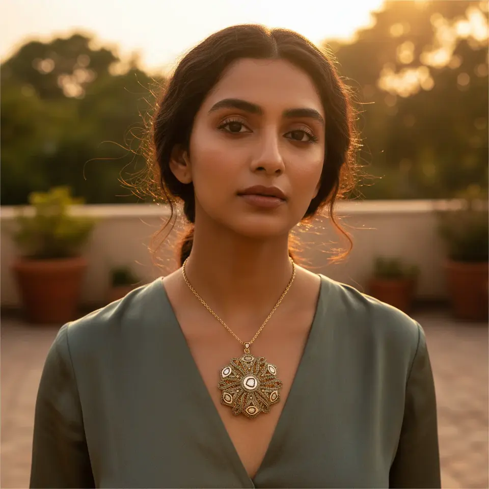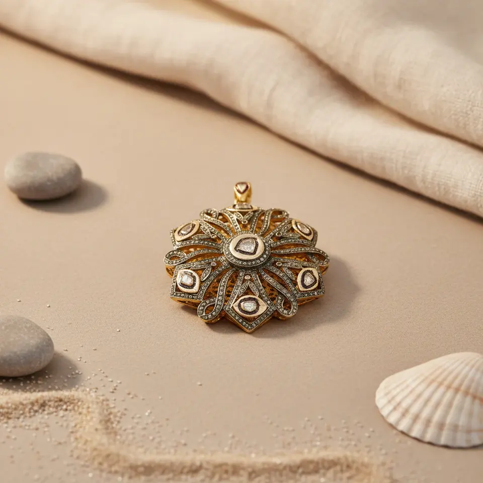 จี้เพชรลวดลายละเอียดสำหรับผู้หญิง ชุบทอง เครื่องประดับพรีเมียม ของขวัญสุดหรู