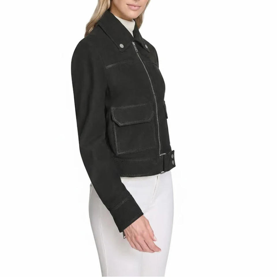 เสื้อแจ็กเก็ตหนังกลับขนแกะสั้นสำหรับผู้หญิง