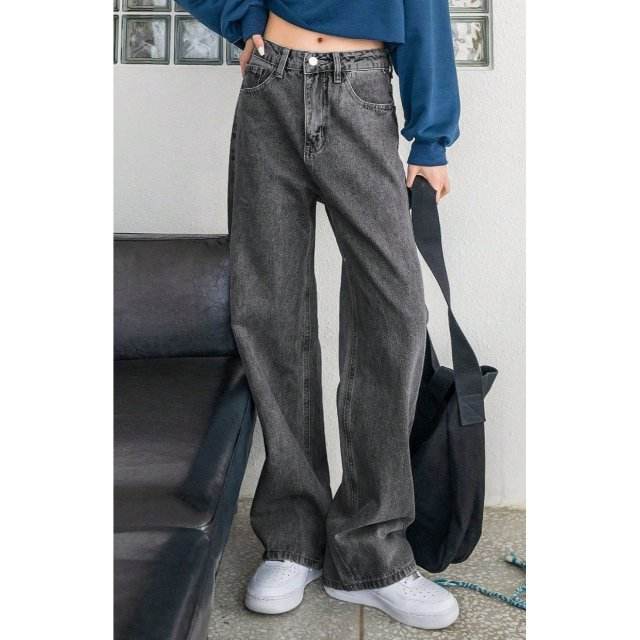 กางเกงยีนส์เดนิมสีเทาทรงหลวมเอวสูงสำหรับผู้หญิง OSCA Luxury รุ่นขาบาน ทรงสบาย ผ้าเนื้อนุ่ม ยืดหยุ่น ทนทาน เป็นมิตรกับสิ่งแวดล้อม ขอบรุ่ย