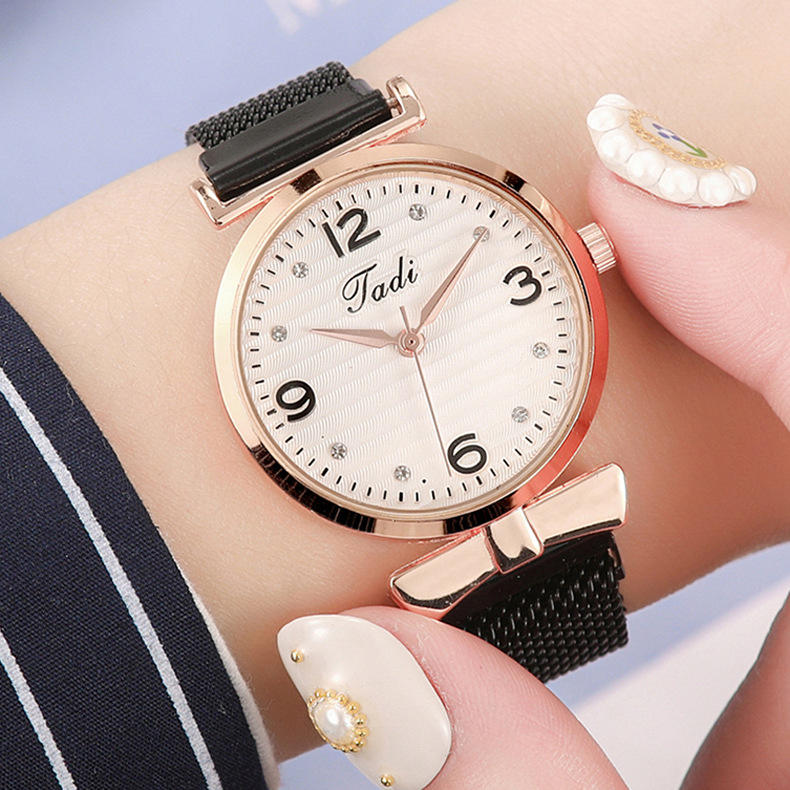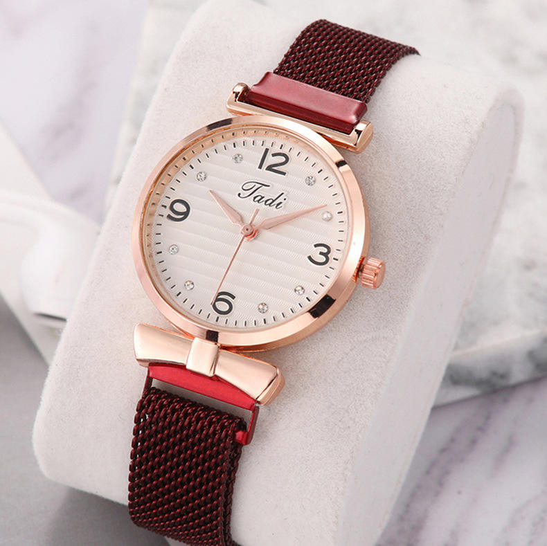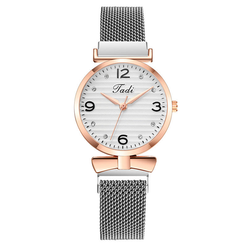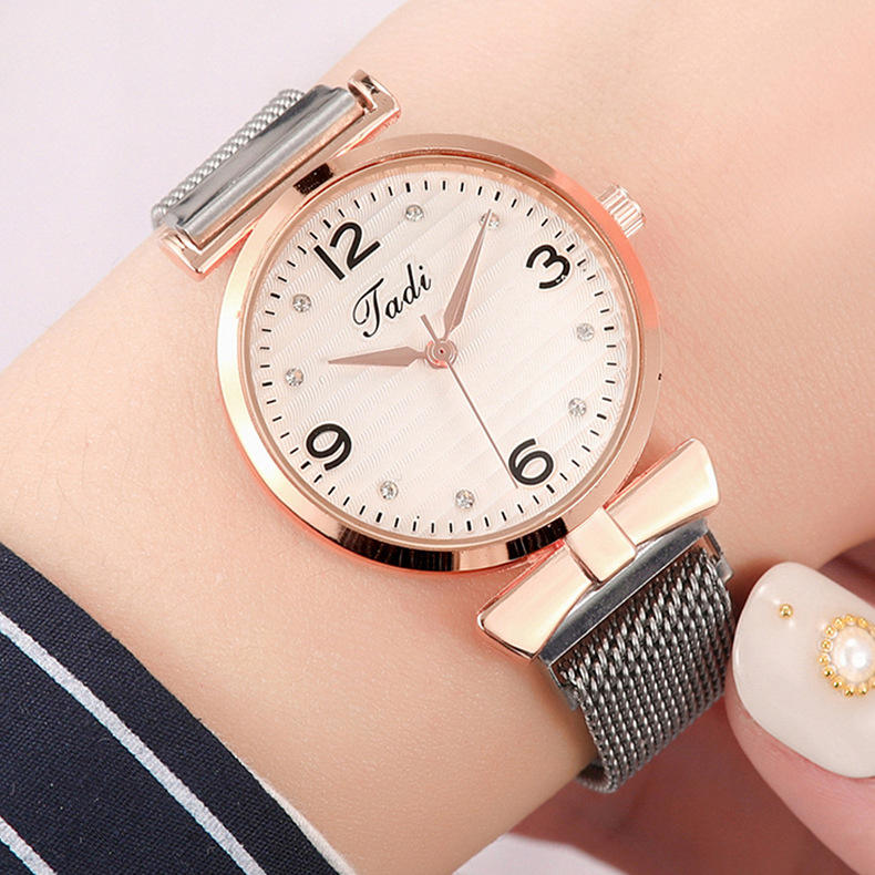 นาฬิกาควอทซ์แฟชั่นธุรกิจสำหรับผู้หญิง ดีไซน์หรูหรา สายแม่เหล็กแบบตาข่าย ดีไซน์สีโรสโกลด์ ตัวเรือนสแตนเลส รุ่น M1128