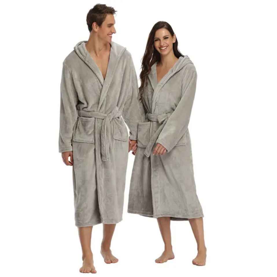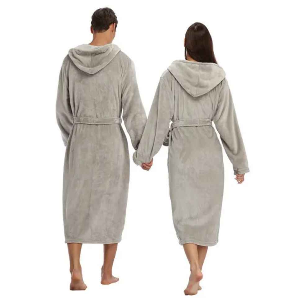 เสื้อคลุมอาบน้ำมีฮู้ดนุ่มหรูหราสำหรับผู้หญิงชุดนอนคู่เสื้อคลุมสำหรับใส่ในบ้าน