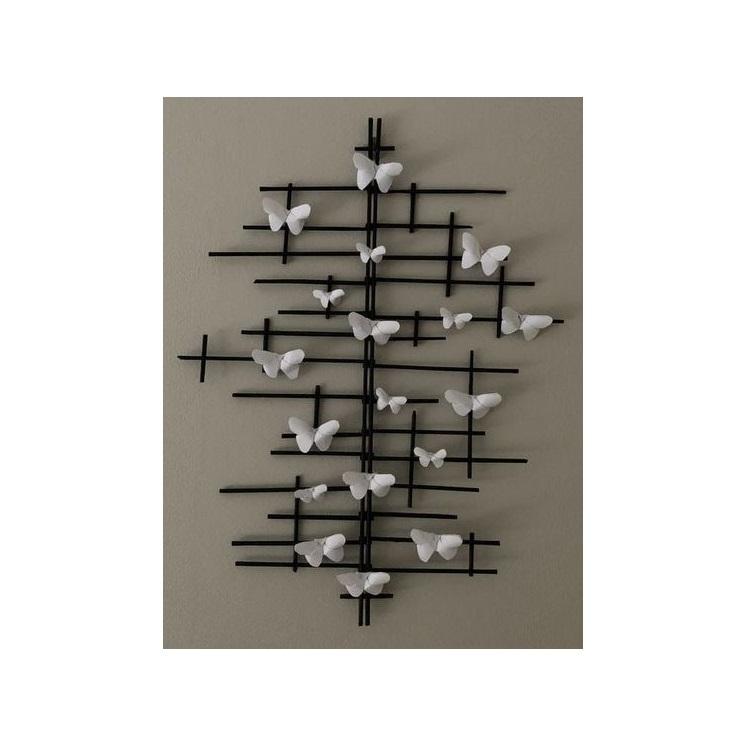 งานศิลปะติดผนังรูปผีเสื้อไม้หรูหรา ขายส่ง งานประติมากรรมเหล็ก 3 มิติ รูปทรงเรขาคณิต ตกแต่งผนัง สำหรับตกแต่งสถานที่ขายอสังหาริมทรัพย์