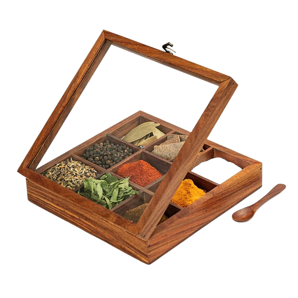กล่องไม้เก็บเครื่องเทศสมุนไพรหรูหรากล่องไม้สำหรับห้องครัวโดยเฉพาะอินเดียอินเดียอินเดีย