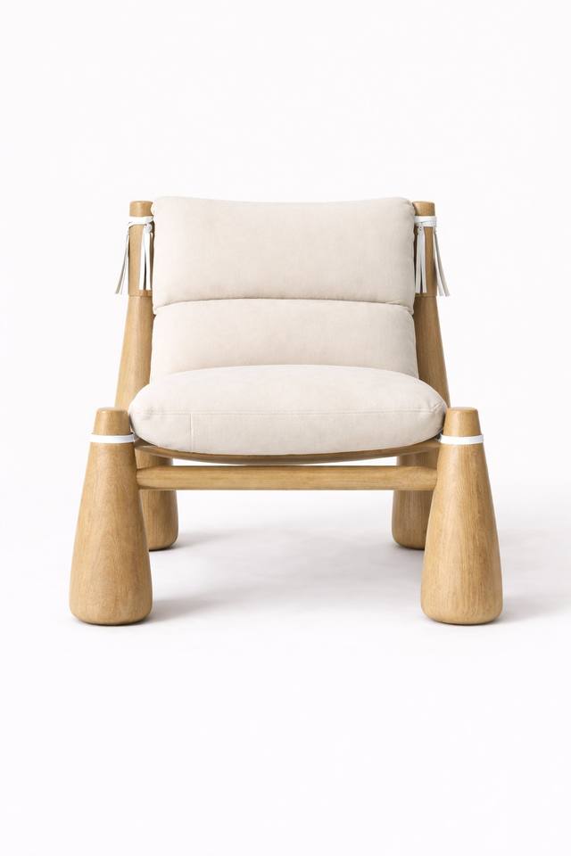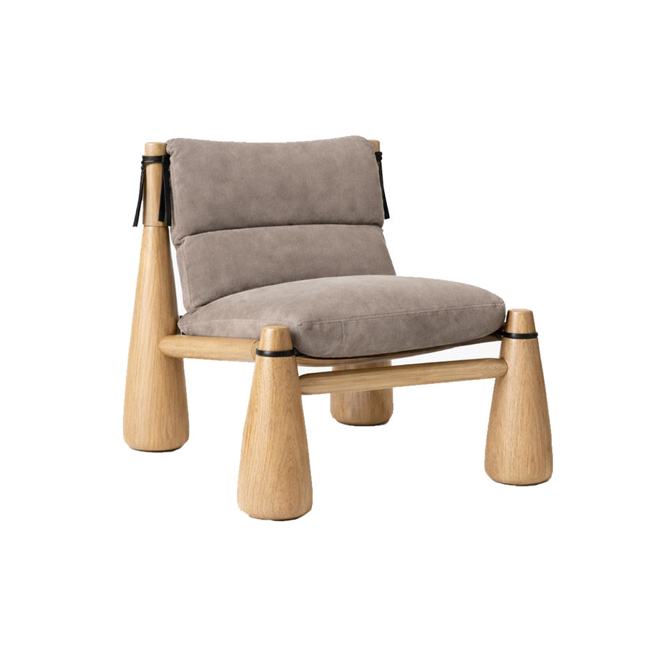 เก้าอี้พักผ่อนไม้หรูหราพร้อมเบาะหนังกลับ – เก้าอี้ทรงประติมากรรมตกแต่งด้วยไม้โอ๊ค สำหรับโครงการโรงแรมและที่อยู่อาศัย ผลิตในเวียดนาม