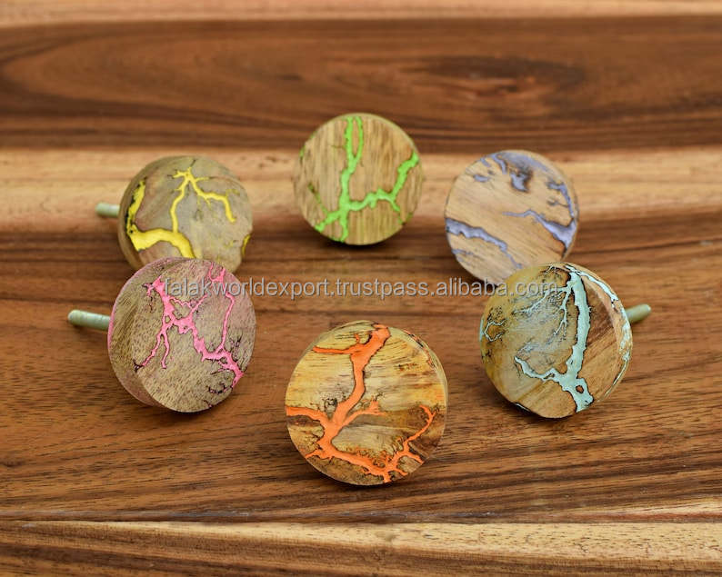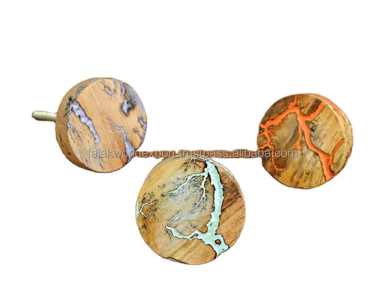 Luxury Wood Resin Metal Door Knob Handle Agate Aqua Wood Brass Round Door Knob Handmade in India Made of Magnesia Crafts By FWE