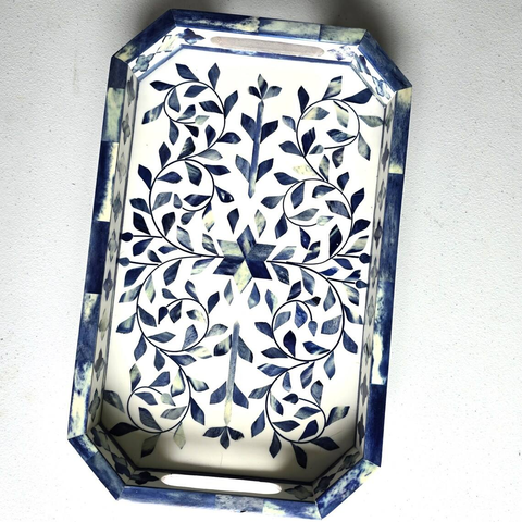 ถาดไม้หรูหราพร้อมลวดลายเรขาคณิตฝังกระดูก สำหรับเสิร์ฟชา กาแฟ ขนมขบเคี้ยว เพิ่มความหรูหราให้กับการตกแต่งบ้าน