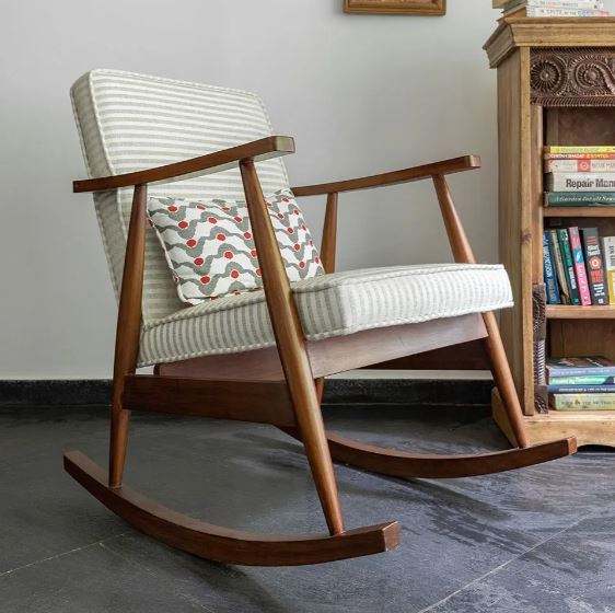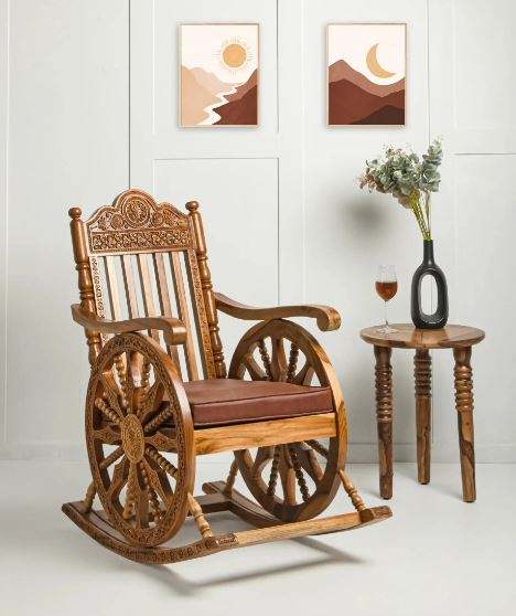 ที่พักแขนไม้แบบปรับเอนได้ทำจากไม้เนื้อแข็งดีไซน์อินเดียเก้าอี้โยกแข็งทำด้วยมือ
