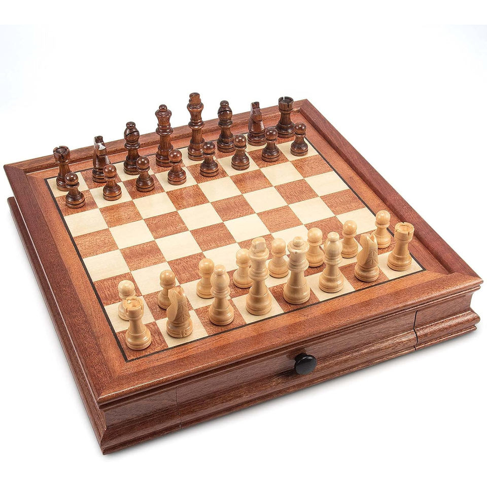 ชุดหมากรุกไม้สุดหรูพร้อมกระดานหมากรุกโลหะทำด้วยมือพร้อมที่เก็บลิ้นชัก