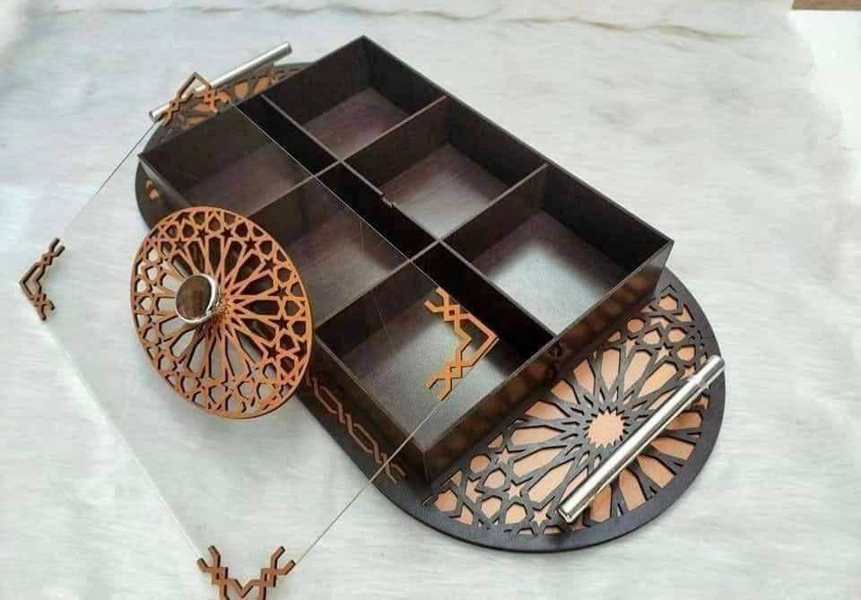 กล่องช็อกโกแลตไม้หรูหราพร้อมฝาอะคริลิกลายอาหรับ ดีไซน์พรีเมียม สำหรับจัดเก็บของขวัญและตกแต่งบ้าน