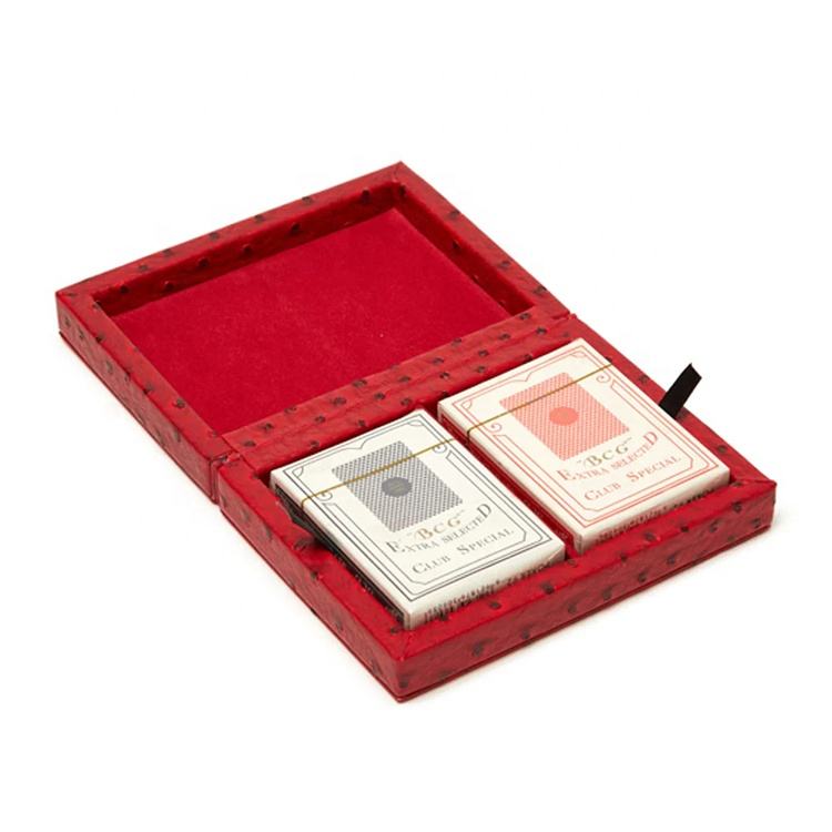 ชุดกล่องเกมไพ่สองชั้นหนัง PU ทำจากไม้สุดหรูพร้อมปากกาและโน้ตบุ๊ก