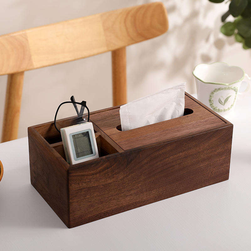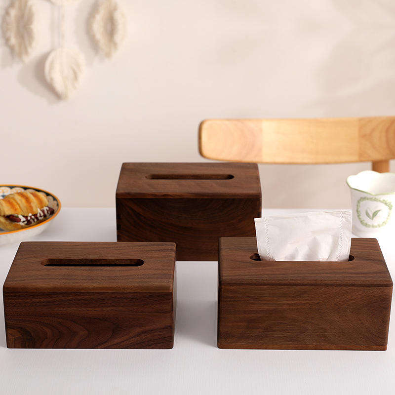 กล่องใส่กระดาษทิชชูไม้ รุ่น SH-2933 ผลิตด้วยมือ ดีไซน์คลาสสิก หรูหรา ทำจากไม้วอลนัทสีน้ำตาล ของ SANIYA HANDICRAFT
