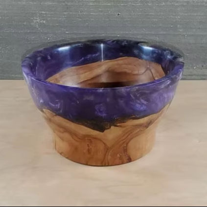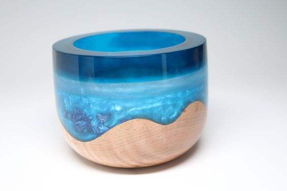 ชามไม้เรซินไม้หรูหราออกแบบทำด้วยมือแบบเรียบง่ายที่ทันสมัยกลางที่จัดแสดงในห้องครัวที่บ้านอย่างมีสไตล์