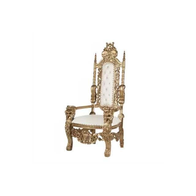 เก้าอี้บัลลังก์ไม้หรูหราสำหรับงานแต่งงาน โรงแรม ทำด้วยมือ เก้าอี้โซฟาเดี่ยวสำหรับงานแต่งงานของกษัตริย์/ราชินี เฟอร์นิเจอร์ห้องนั่งเล่น