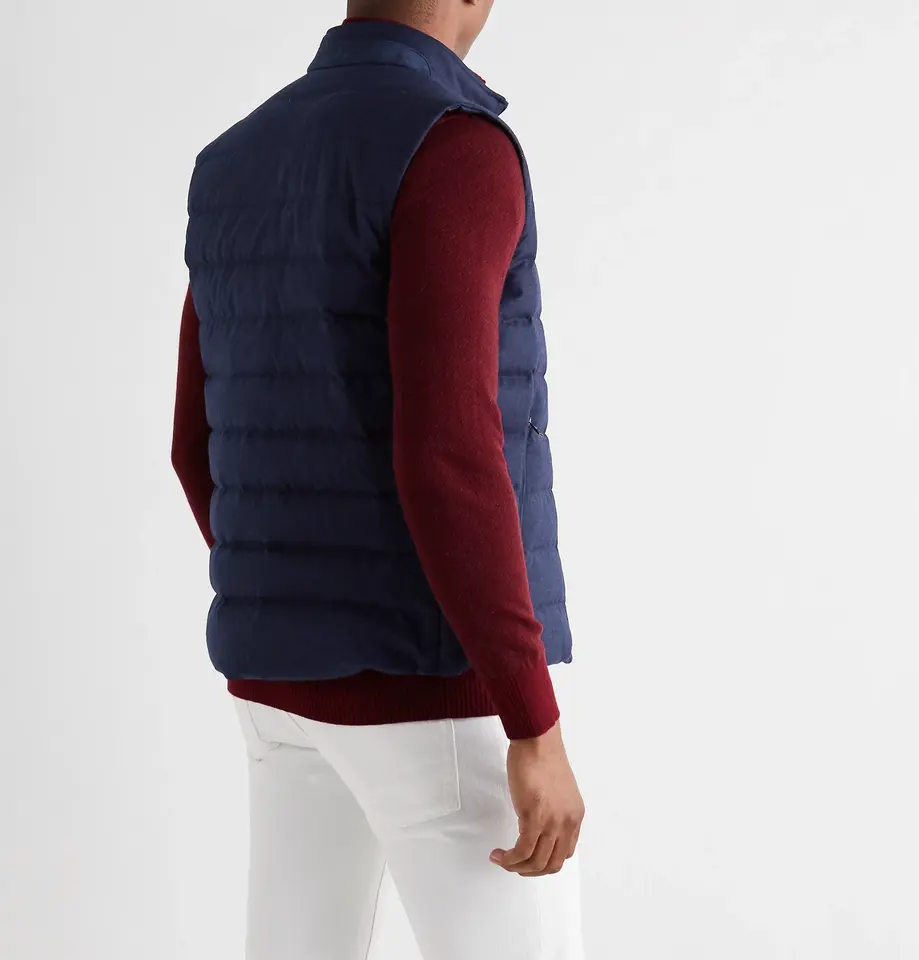 เสื้อกั๊กขนแกะผสมสุดหรูสำหรับผู้ชายเสื้อแขนกุดบุสองชั้นคอตั้งสีน้ำเงินเข้มเสื้อแขนกุดสำหรับฤดูหนาว