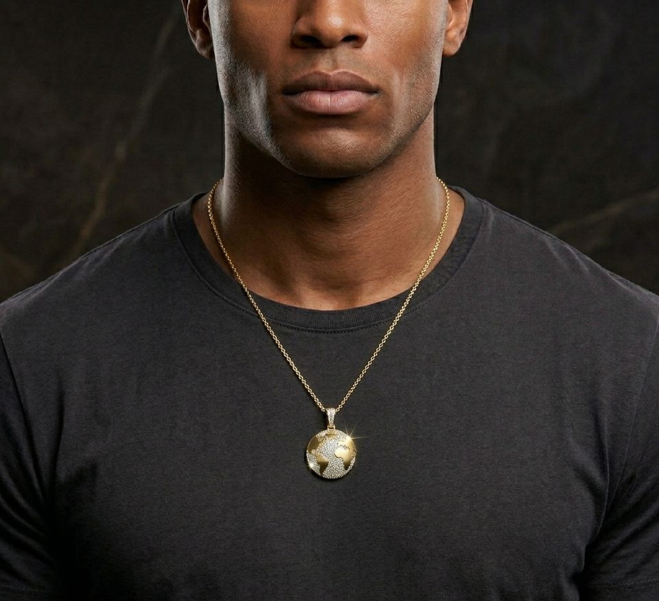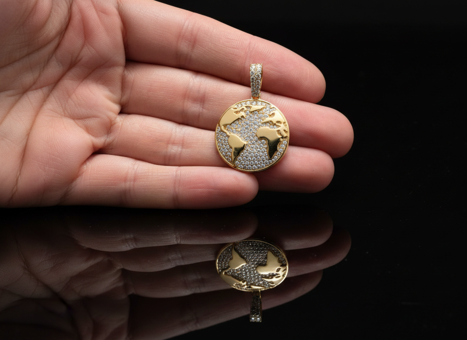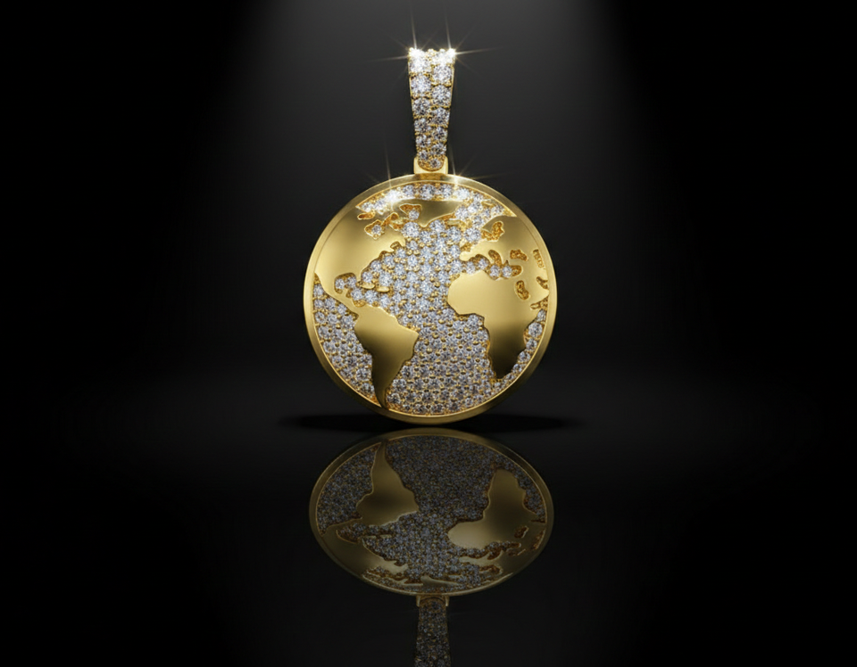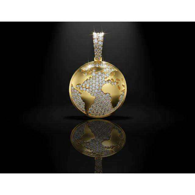 จี้รูปแผนที่โลกสุดหรู ประดับเพชรโมอิสซาไนต์ ทรงลูกโลก สไตล์ฮิปฮอป พร้อมสร้อยคอ จี้ทองคำ/เงิน
