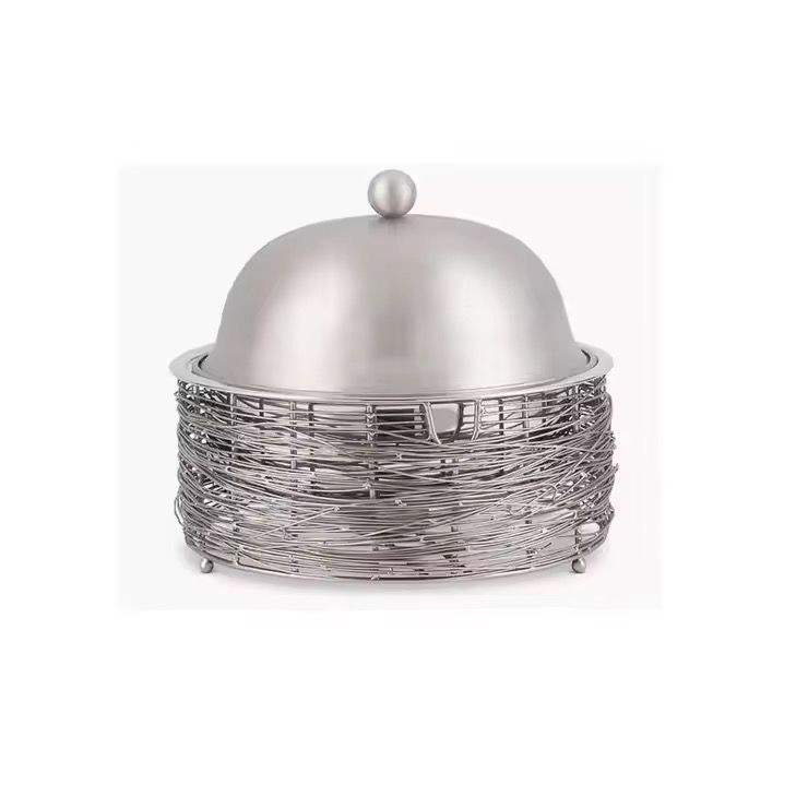ชุดอุ่นอาหารบุฟเฟ่ต์สแตนเลสสตีลฐานทออย่างหรูหรา พร้อมฝาครอบแก้ว สำหรับจัดเลี้ยงและเสิร์ฟ