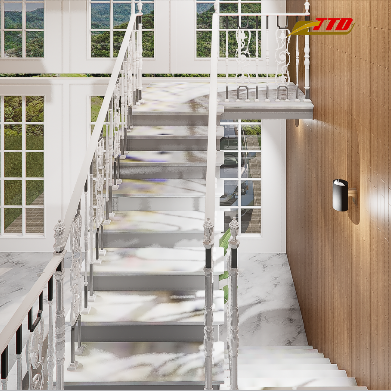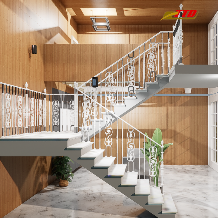 ราวบันไดเหล็กดัดอลูมิเนียมอัลลอยด์สุดหรู ดีไซน์ทันสมัย รายละเอียดงานฝีมือ โครงสร้างแข็งแรงเพื่อความปลอดภัย ดูหรูหรา