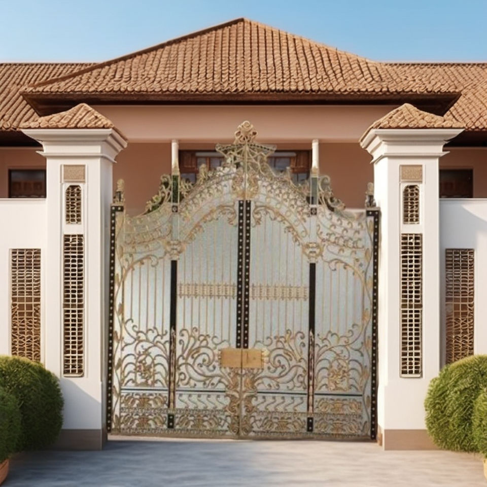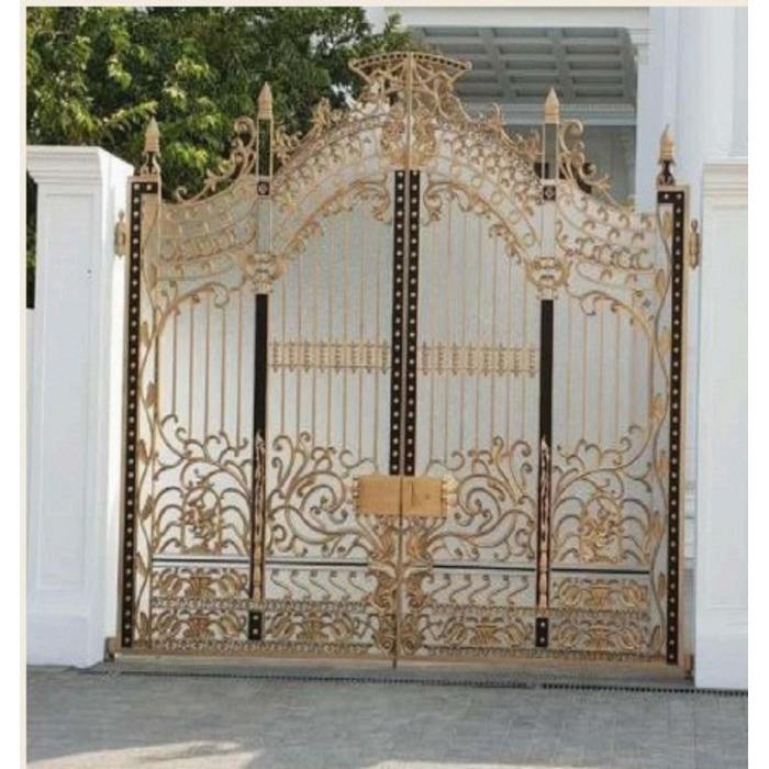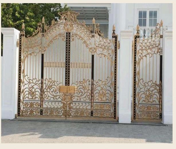 ประตูรั้วหลักเหล็กดัดหรูหราพร้อมเคลือบด้วยทองคำเปลว | ประตูรั้วรักษาความปลอดภัยสำหรับวิลล่าสั่งทำพิเศษ ขายส่ง