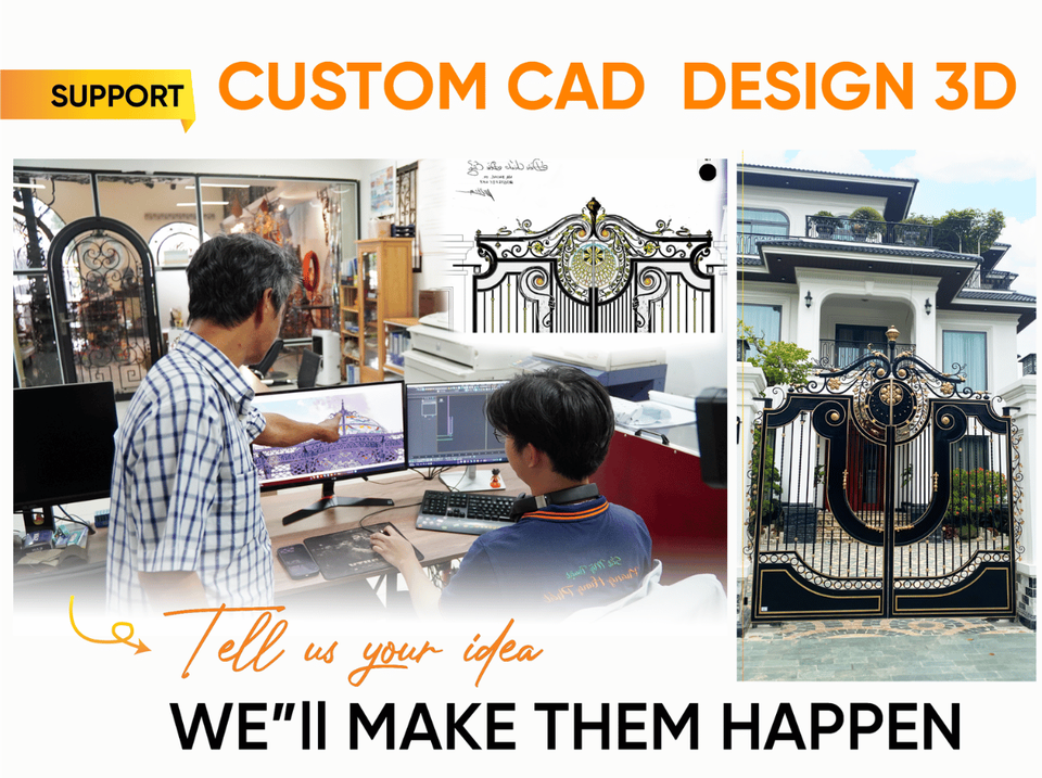 ประตูเหล็กดัดคู่หรูหราทันสมัยสำหรับภายนอกอาคาร งานตีขึ้นรูปด้วยมือ สำหรับลานบ้าน โรงแรม วิลล่า ออกแบบตามสั่ง CAD พร้อมแบบจำลอง 3 มิติ