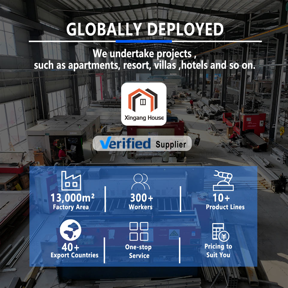 บ้านพักตากอากาศหรูหรา ซิงกัง ได้รับการรับรองมาตรฐาน ISO9001 โครงสร้างเหล็กสำเร็จรูป วิลล่าดีไซน์ทันสมัยสไตล์นอร์ดิก สองชั้น พร้อมสระว่ายน้ำ