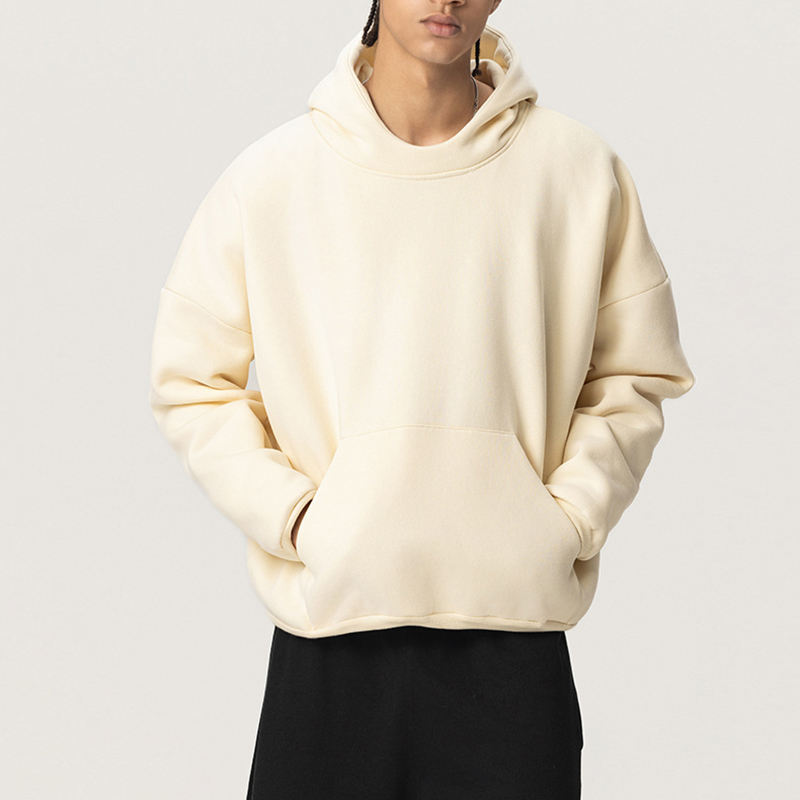 เสื้อมีฮู้ดผ้าคอตตอนทรงหลวมมีฮู้ดสำหรับผู้ชายเสื้อสเวตเตอร์โอเวอร์ไซส์หรูหรา