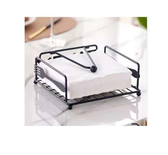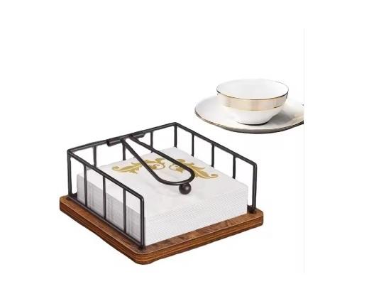 ที่ใส่ผ้าเช็ดปากโลหะทำมือพร้อมที่ใส่ผ้าเช็ดปากสีดำดีไซน์ดูหรูหราและทันสมัย