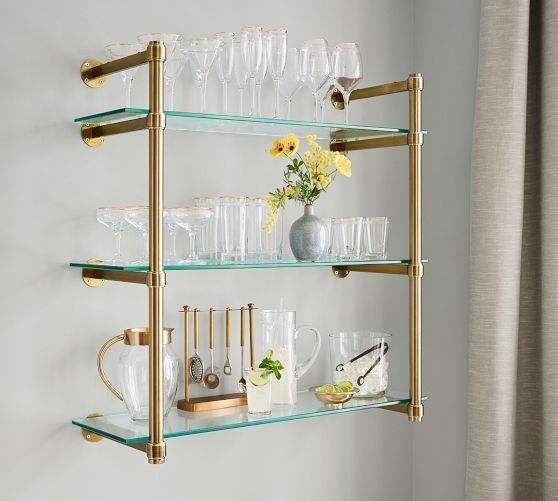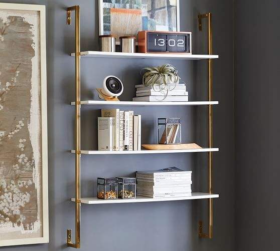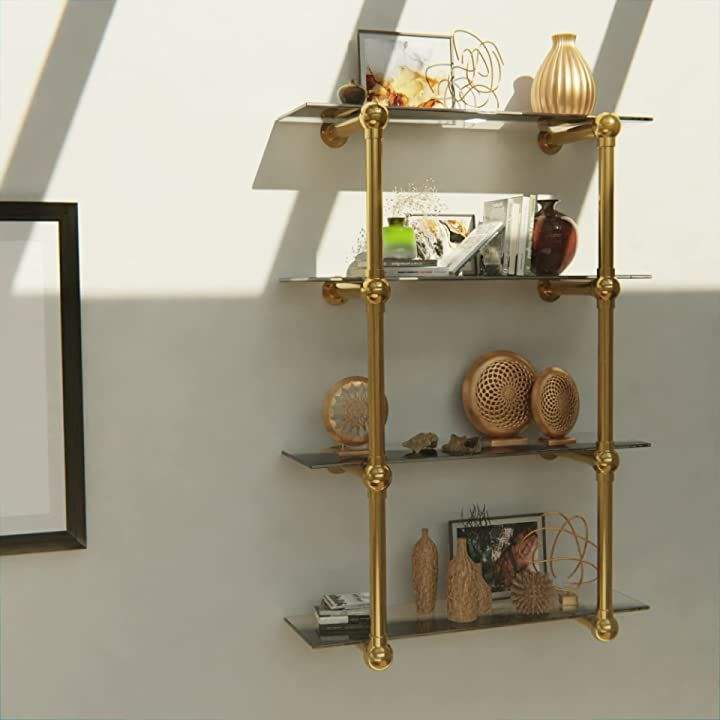Luxury brass wall mounted racks shelves for living room space saving decorative display