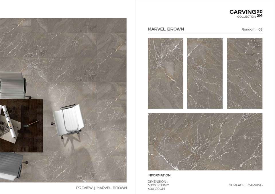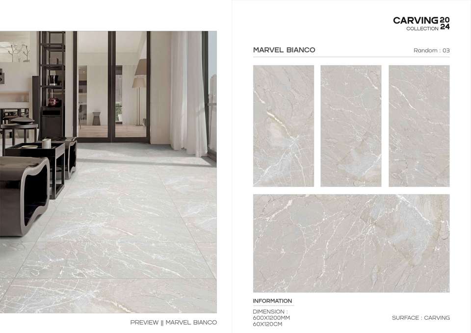 กระเบื้องพอร์ซเลนเคลือบเงาผิวแกะสลักหรูหรา ผลิตขึ้นเพื่อใช้ปูพื้นและผนังขนาดใหญ่ในงานตกแต่งภายในที่สวยงาม