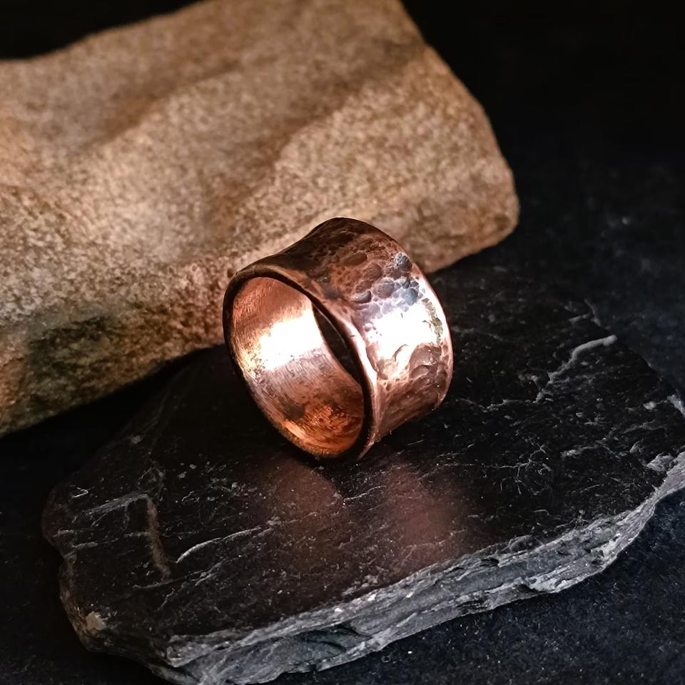 แหวนทองแดงสุดหรู แหวนทองแดงตีขึ้นรูปด้วยมือ แหวนทองแดงสไตล์มินิมอล เครื่องประดับทองแดงทำมือ แหวนทองแดงสไตล์เรียบง่าย