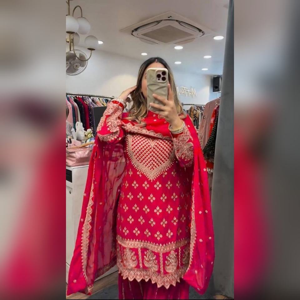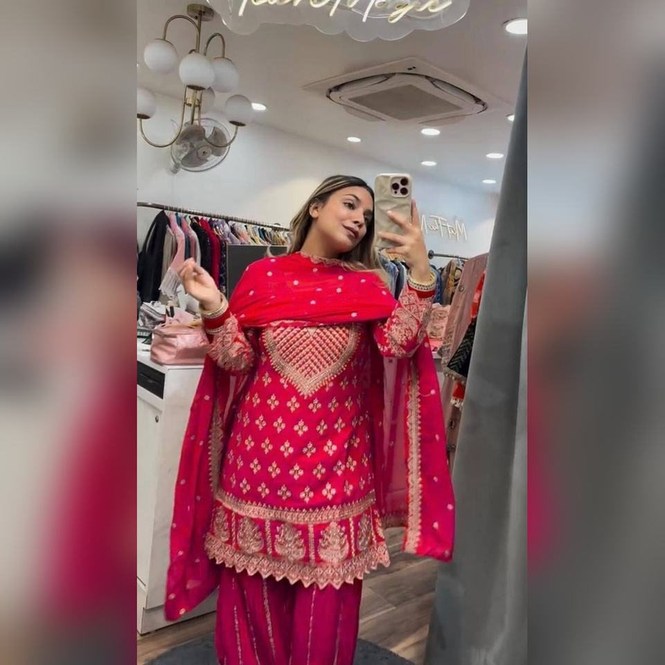 ชุดชารารา ซัลวาร์ คามีซ ผ้าฝ้ายหรูหรา พร้อมงานปักด้ายหนักที่เสื้อและกางเกงทรงพาลาซโซ พร้อมผ้าคลุมไหล่ สำหรับใส่เที่ยวสบายๆ ส่งตรงจากโรงงาน